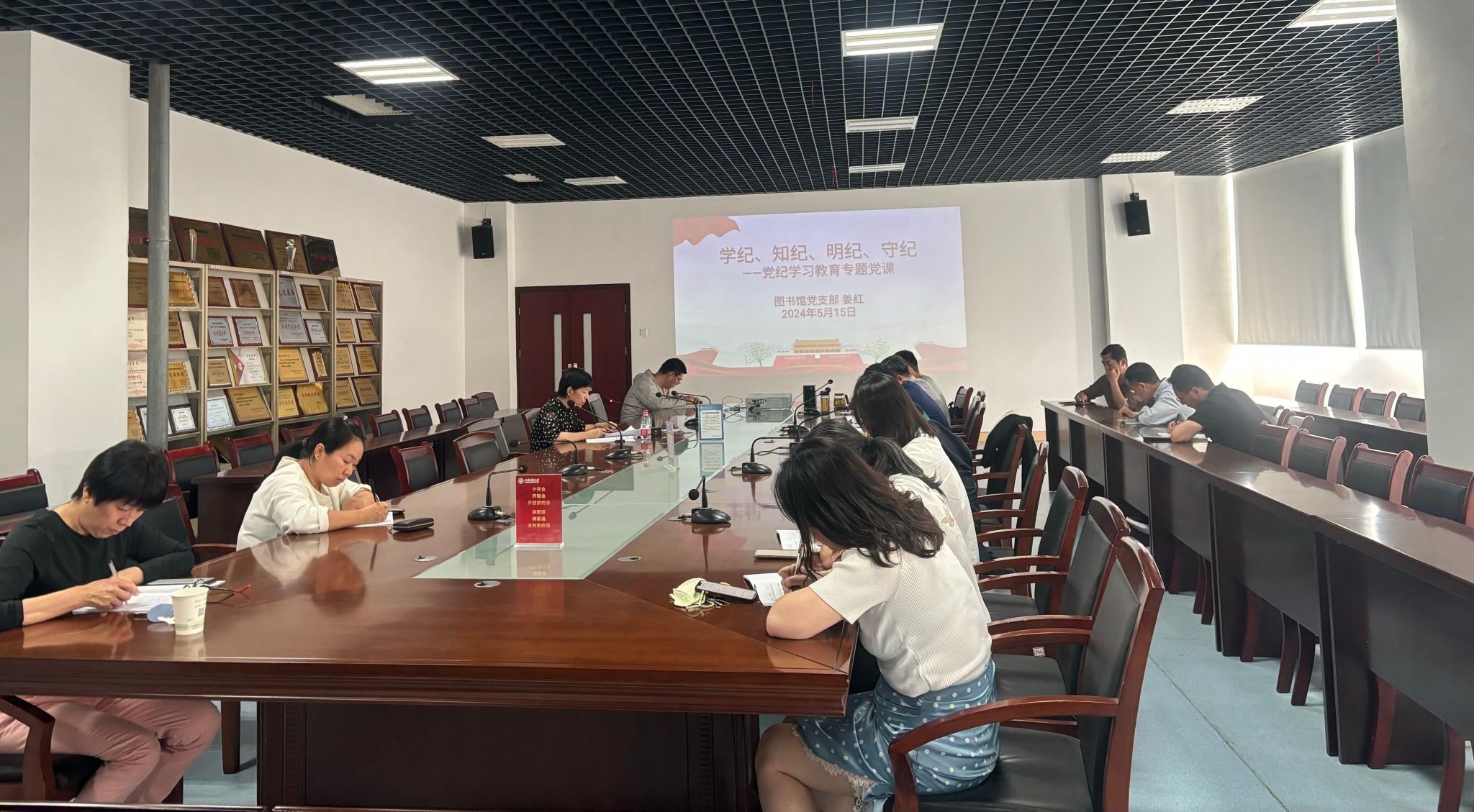 2024年5月15日上午,图书馆党支部召开党纪学习教育暨“一月一主题”专题学习会。会议由图书馆党支部书记姜红主持。