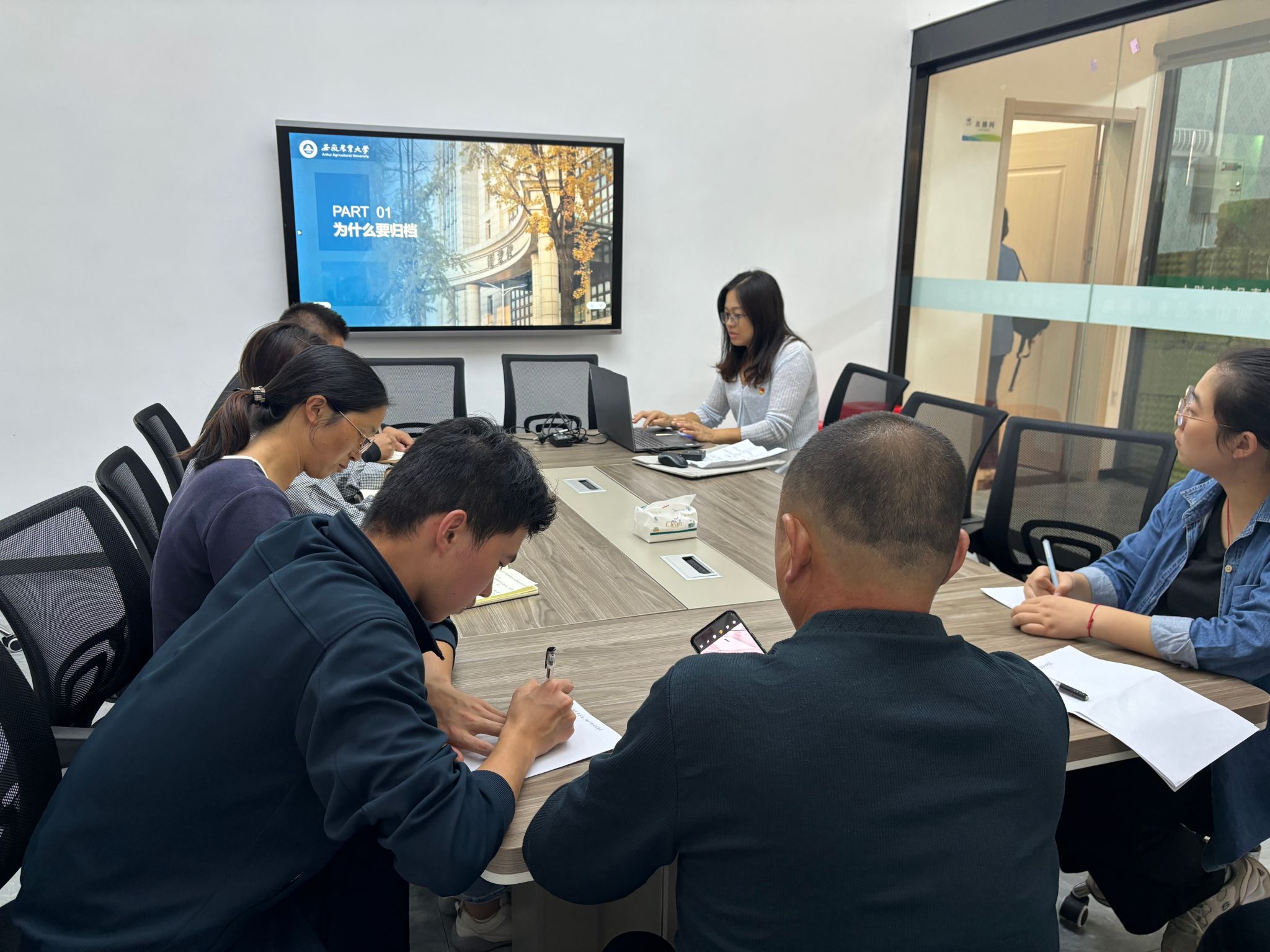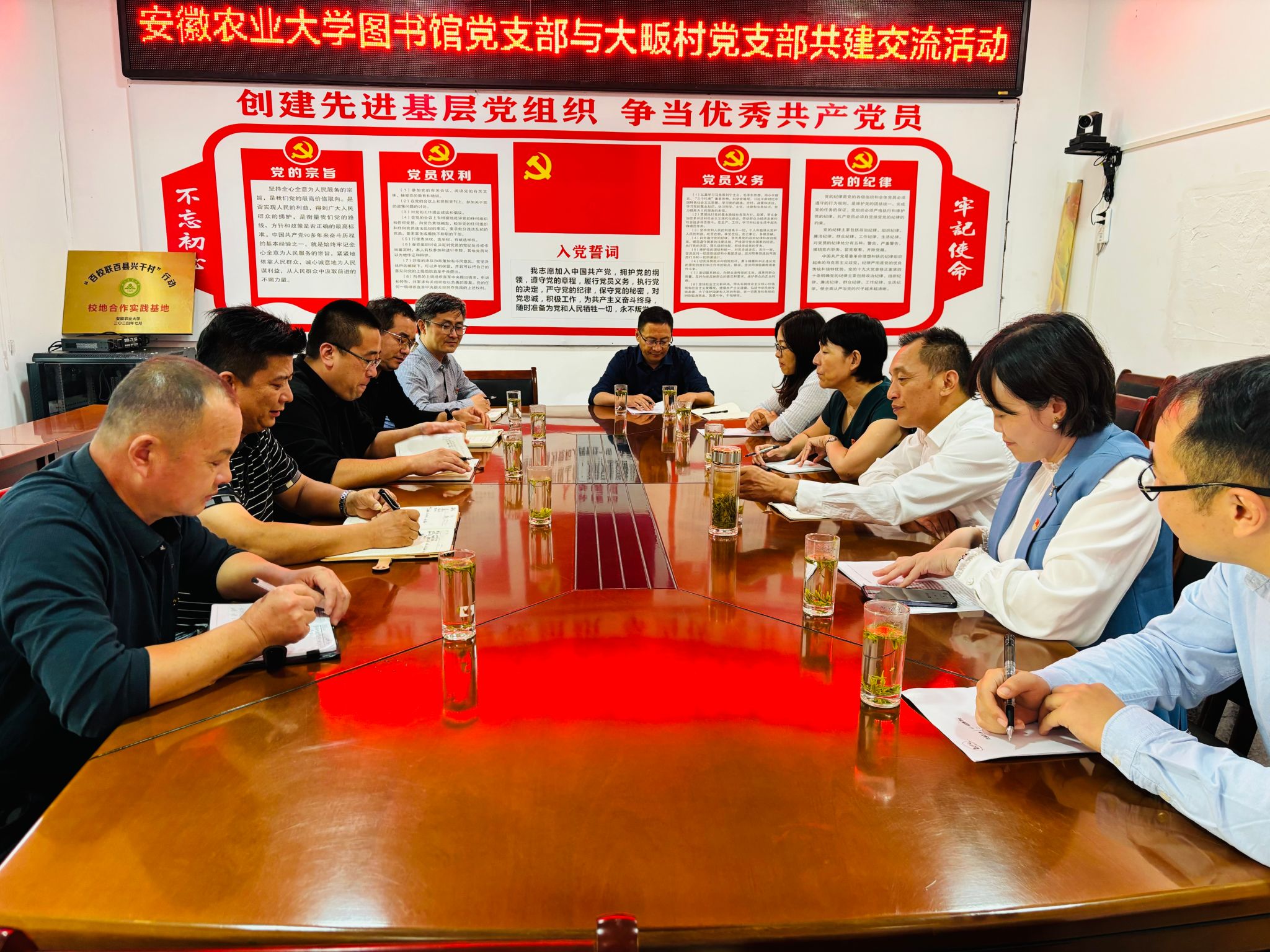 会后举行安徽农业大学图书馆捐赠大畈村红色图书期刊启动仪式,邱艳同志给大畈村村委班子作题为《加强档案现代化 助力乡村文化振兴》的业务培训。