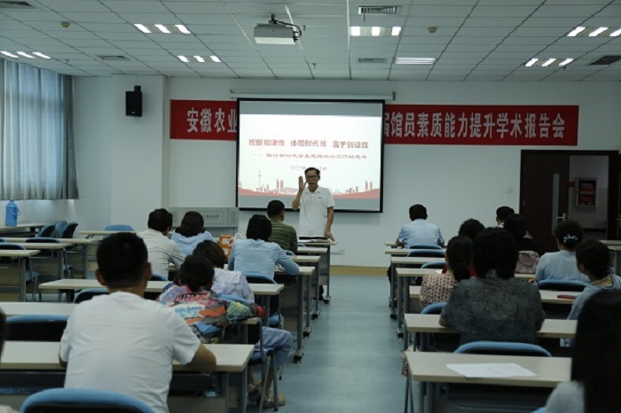 2022年9月15日下午,“图书馆、档案馆第六届馆员素质能力提升学术报告会”在图书馆610拉开帷幕,校图书馆、档案馆全体馆员齐聚一堂,共同聆听校工学院辅导员、武汉大学高校思政骨干在读博士刘灿老师带来的题为《把握规律性体现时代性富于创造性——做好新时代学生思想政治工作的一点思考》专题报告。报告会由图书馆、档案馆吴文革馆长主持。