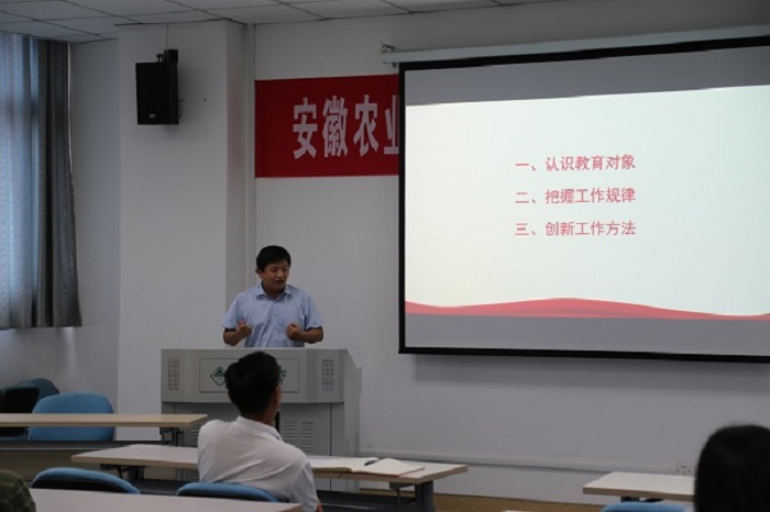 刘灿老师的报告,思路清晰,逻辑严密,实践性强。报告从家庭结构、时代背景、生活方式、社会心态和人际结构等5个方面分析了当代大学生群体的特征。刘灿老师结合自己多年任辅导员工作的实践梳理了思想政治教育的内在机理:坚持教育与管理相结合、坚持教育与自我教育相结合、坚持理论教育与社会实践相结合、坚持解决思想问题与解决实际问题相结合。通过对思想政治教育工作规律的把握,结合当代大学生群体特征,探讨新时代大学生思想政治工作的思路:因事而化用活好办法、因势而新赋能老办法、因时而进探索新办法。
