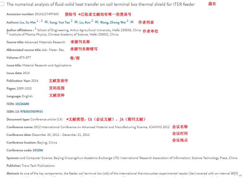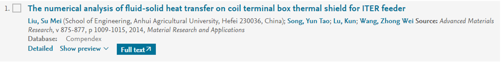 举例:title=The numerical analysis of fluid-solid heat transfer on coil terminal box thermal shield for ITER feeder