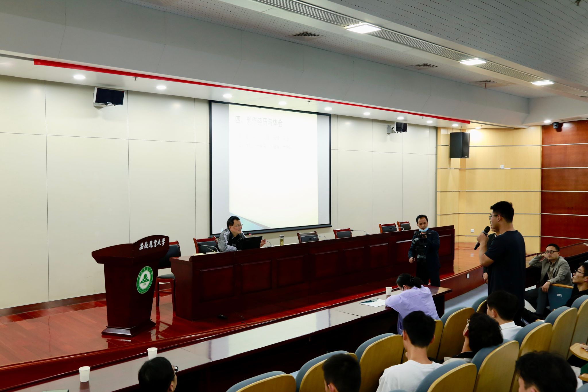报告会上他还从创作的阶段——风景、风情、风骨入手,跟到场师生分享自己创作经历、体会以及一桌菜、一座城、一条江的创作计划。