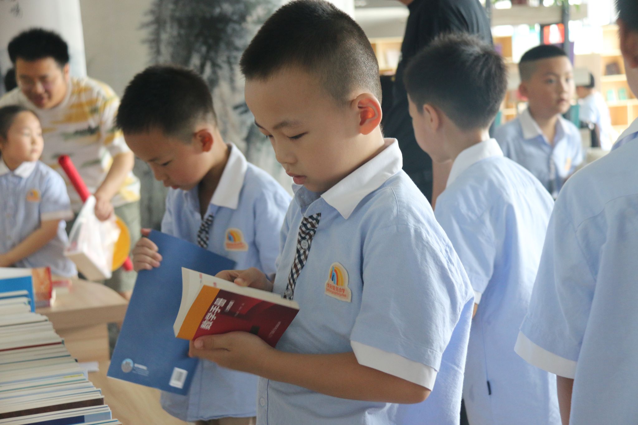 6月15日上午,华府骏苑小学一(7)班20余名同学来我馆开展研学活动。图书馆负责老师和学生志愿者参与引导和讲解。