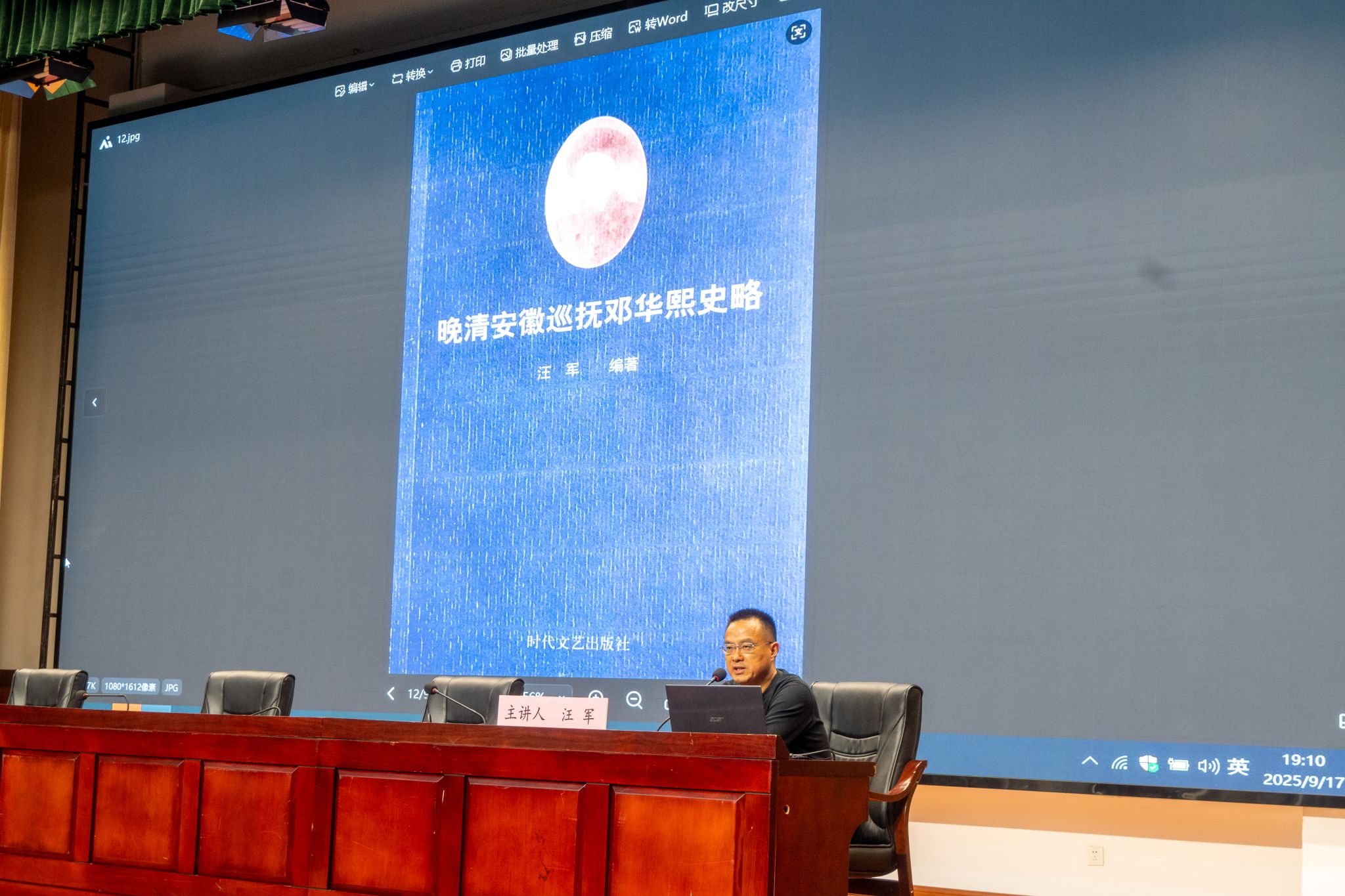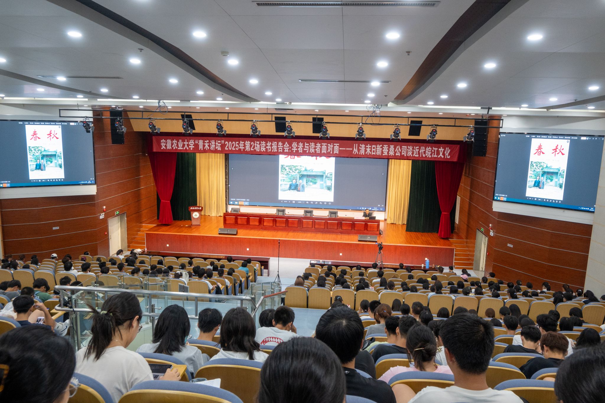 本网讯 9月17日晚,青禾讲坛2025年第2场读书报告会在图书馆第一报告厅举行,文化学者、皖江文化研究会会长汪军老师受邀为我校师生作题为《从清末日新蚕桑公司谈近代皖江文化》的读书报告,全校500余名师生聆听了报告。