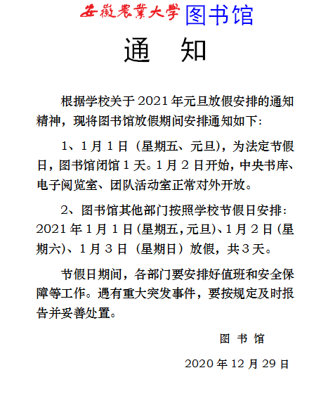 图书馆、档案馆一周安排表(2021年1月4日——2021年1月8日)