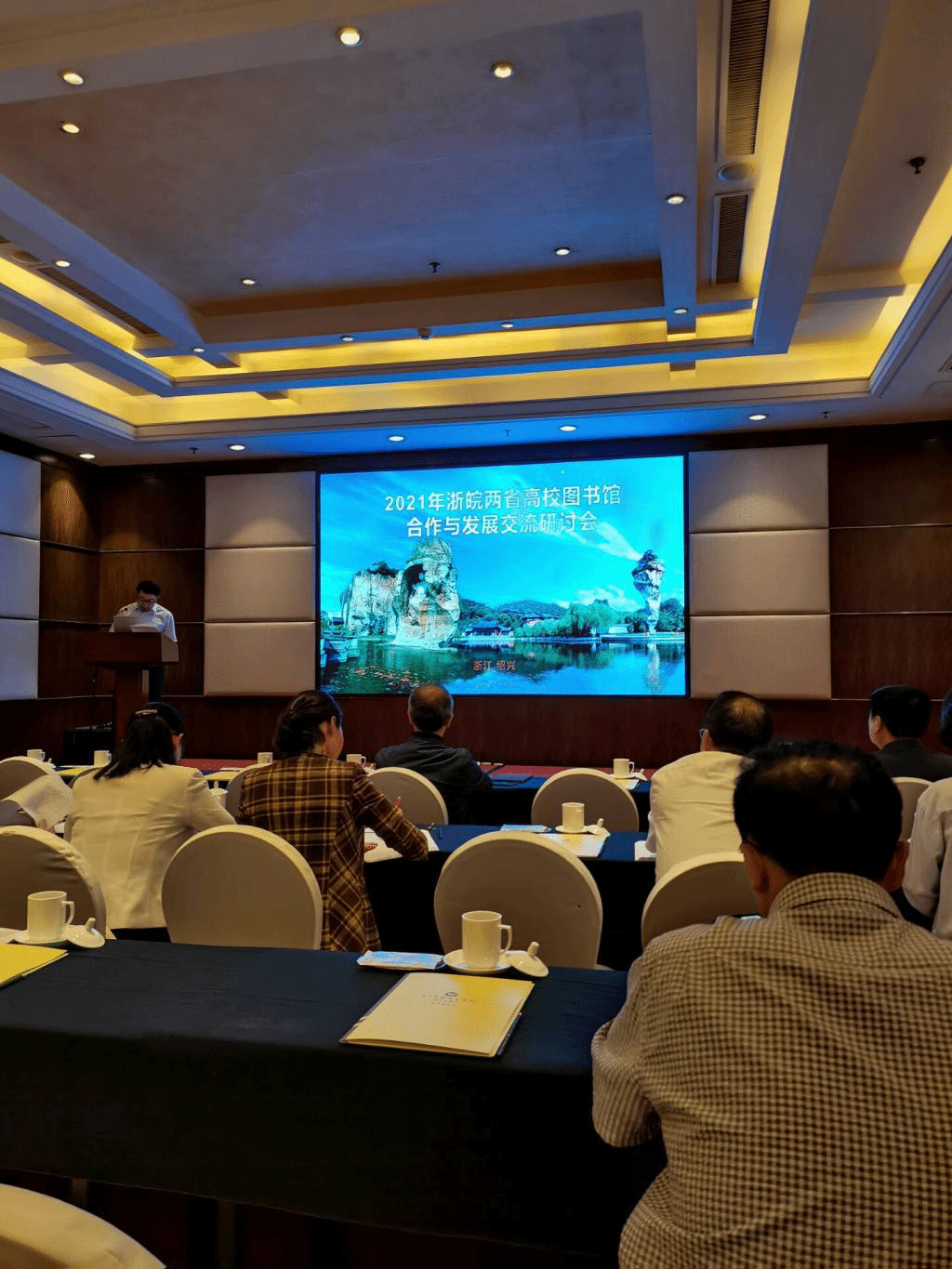 5月13日至14日,2021年浙皖两省高校图书馆合作与发展交流研讨会在绍兴召开,会议由浙江省高等学校图书情报工作委员会、安徽省高等学校图书情报工作委员会主办,绍兴文理学院图书馆承办。会议主题为“携手并进合作发展共赢未来”。来自19所高校图书馆的40位代表参加了本次会议。我校图书馆吴永辉副馆长在会上做了交流发言。