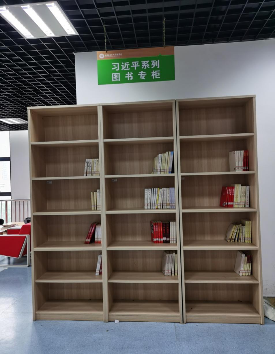 “习近平系列图书专柜”集中向读者展示了习近平总书记的一系列图书,如《论中国共产党历史》、《论坚持全面依法治国》、《习近平谈治国理政》、《习近平关于“三农”工作论述摘编》、《习近平新时代中国特色社会主义思想三十讲》、《论坚持全面深化改革》、《习近平扶贫论述摘编》、《做焦裕禄式的县委书记》、《习近平与大学生朋友们》、《习近平在宁德》、《习近平在厦门》等几十种图书,供师生借阅。