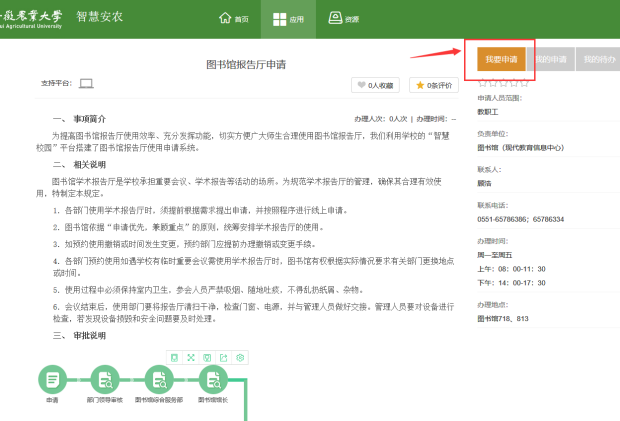 三、按照申请说明点击“我要申请”在线填写申请表格,完成各项审批流程。
