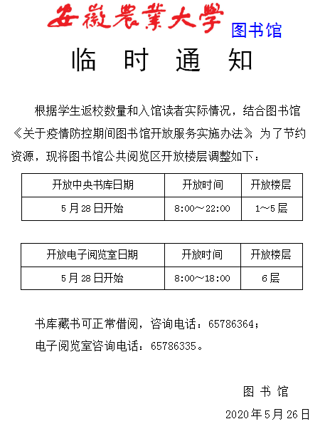 疫情防控期间图书馆公共阅览区开放模式调整通知