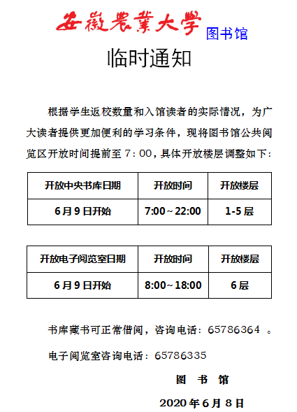 图书馆一周安排表(2020年6月8日——2020年6月12日)