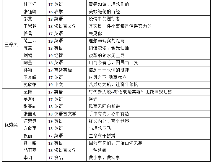 第四届安徽农业大学“青禾悦读,书香安农”校园读书创作活动获奖名单