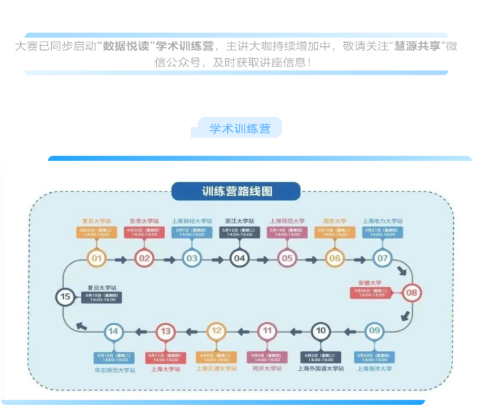 为推动和促进长三角地区教育科研领域数据资源的汇聚流通和共享开放,鼓励高校师生利用新技术对开放数据进行创新研究与应用,聚合各行业力量培养和提升大学生的数据素养,在上海市教育委员会、上海市经济和信息化委员会的指导与支持下,复旦大学图书馆、上海市教育委员会信息中心和上海市科研领域大数据联合创新实验室联合长三角地区多家高校和企业,面向全国高校师生举办第二届“慧源共享”高校开放数据创新研究大赛系列活动。