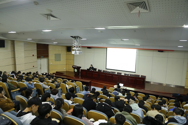 本网讯 12月11日晚上18:30,“时代书苑·青禾讲坛”迎来了2019年第6讲(总第25讲),校图书馆第2学术报告厅内座无虚席,安徽大学人文学院院长吴怀东教授为我校师生带来一场题为“陶渊明田园诗及其当代意义”的专题报告。此次活动由校图书馆、现代教育信息中心、人文社会科学学院、校团委主办,图书馆新媒体团队、图书馆学生服务中心团队、图书馆微传媒团队、青禾悦读推广团队协办。