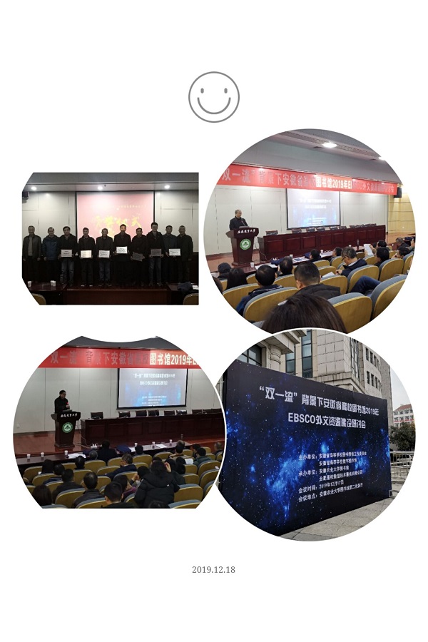 安徽省图书馆副馆长王建涛、合肥工业大学图书馆馆长陈科、安徽省高校数字图书馆办公室主任中国科学技术大学图书馆学科馆员李琛、安徽医学高等专科学校图文信息中心副主任杨敏、芜湖职业技术学院图书馆副馆长黄勇、合肥蓬桉数据技术服务有限公司张玉兰分别做了题为《关于图书馆数字资源建设的几个问题》《高校“双一流”建设背景下图书馆文献资源建设与管理》《集成智慧,高效传播——“双一流”背景下科大图书馆资源建设思路与实践》《专科院校图书馆学科服务》《芜湖职业技术学院图书馆资源建设与服务提升》《EBSCO安徽服务商工作汇报》的报告。