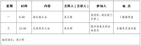 图书馆一周安排表(2019年7月1日——2019年7月5日)