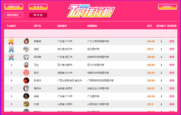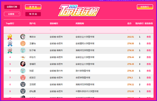 此次活动全国1317所图书馆参与,171778名选手报名参赛。其中,我校共有573人通过网络提交了作品,报名人数在安徽地区排名第一;有22名同学成功晋级进入复选阶段,晋级人数在安徽地区排名第一。我校17级园艺专业的蒋政华同学以总分282.51分全国排第7、全省排第1的好成绩,获得全国前20名直接晋级“全国总展示”的资格。