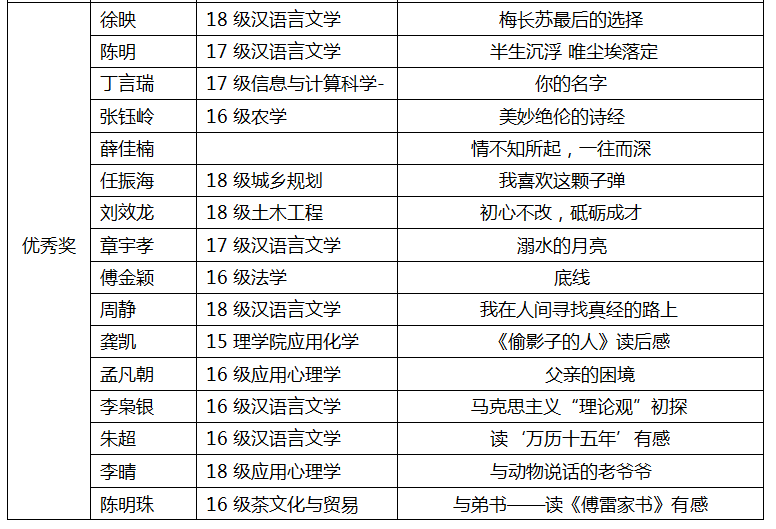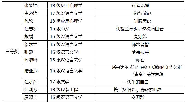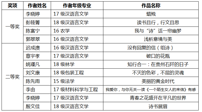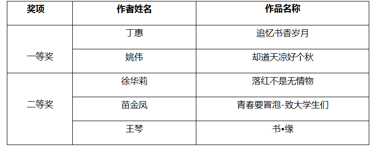 温馨提示:定于2019年6月18日(周二)19:00-21:00在图书馆第二学术报告厅举行颁奖仪式,敬请获奖师生参与。