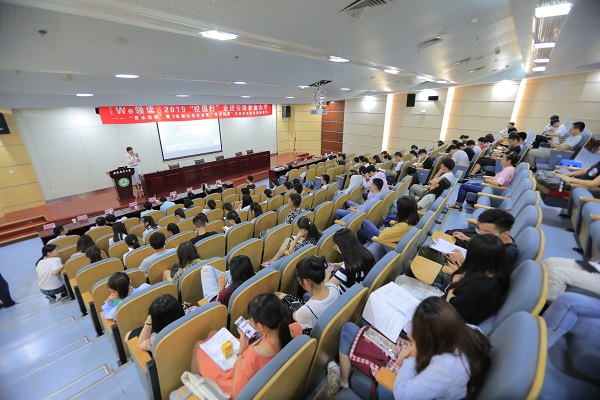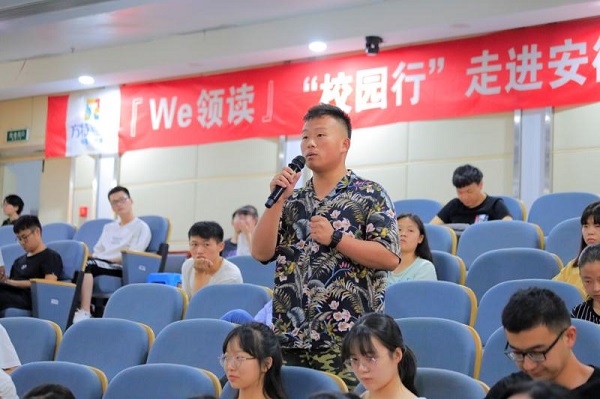 『We领读』领读者、中国科学技术大学管理学院院长助理、管理学者、畅销书作家赵征博士,为现场百余名师生做主题为“你的价值都在打开天花板之后”的专题报告。赵老师从“什么是管理?管理的作用是什么?”等问题入手,结合丰富鲜活的案例展开深入浅出的分析;他认为未来的竞争,是管理的竞争,是“刷新”和“重新定义”的频率之争。此外,他还以“在学习与生活的过程中是否遇到过自己的‘天花板’?为什么会产生这种‘天花板’?”为线,循循善诱,启发到场师生的进一步思考。赵老师幽默风趣的表达,让到场的师生受益匪浅,强烈感受到『We领读』2019“校园行”走进安徽农业大学专场的缕缕“书卷气”。