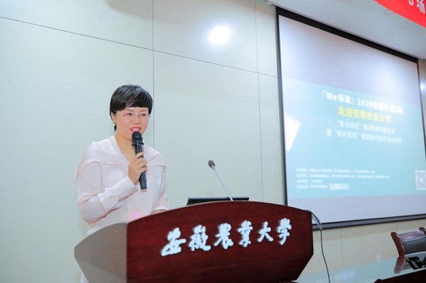 『We领读』总策划、资深媒体人、安徽省旅游协会市场营销和电商分会秘书长赵媚,现场主题分享了“『We领读』的梦想与追求”:“『We领读』通过‘线上阅读发声,线下走读发生’的运作模式,致力打造‘同读有益之书,共走有趣之路’这一全新的‘读、行生态圈’”。
