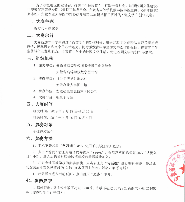 关于举办第二届超星杯“新时代·微文学”创作大赛的通知
