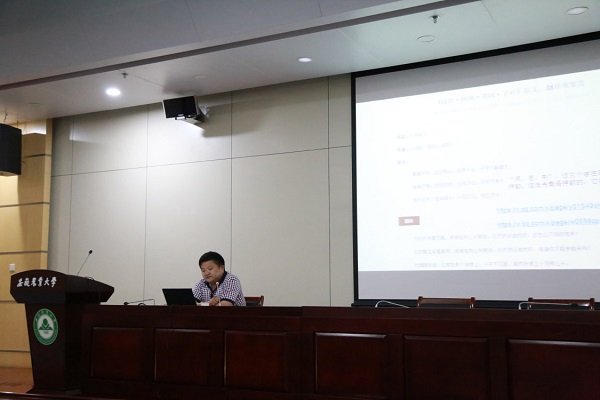 本网讯 5月22日下午15:00,“时代书苑·青禾讲坛”迎来了2019年第2讲(总第21讲),南京艺术学院图书馆馆长、中国图书馆学会阅读推广委员会委员兼大学生阅读推广专业委员会副主任陈亮研究馆员在校图书馆第2学术报告厅为我校师生做了一场题为“古典诗词诵读与中华传统文化”的专题报告会;图书馆馆长吴文革等参加本次报告会。此次活动由校图书馆、现代教育信息中心、人文社会科学学院、校团委主办,图书馆新媒体团队、图书馆学生服务中心团队、图书馆微传媒团队、青禾书店创业团队、青禾讲坛服务团队协办。