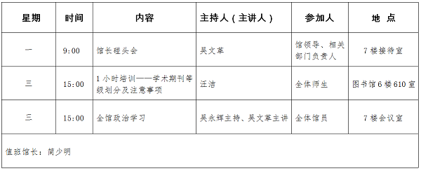 图书馆一周安排表(2019年6月17日——2019年6月21日)