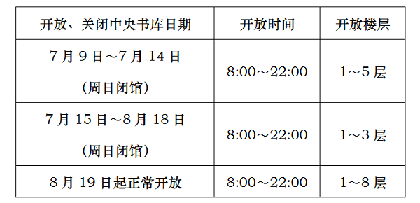 图书馆一周安排表(2019年7月8日——2019年7月12日)