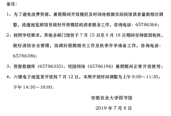 关于2019年图书馆暑假工作安排的通知