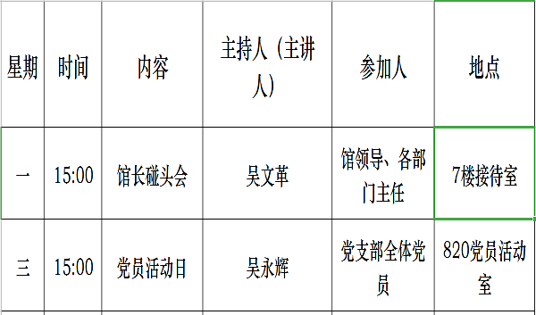 图书馆一周安排表(2019年9月9日——2019年9月12日)
