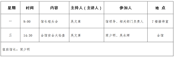 图书馆一周安排表(2019年7月8日——2019年7月12日)