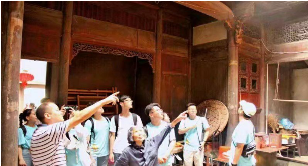 实践团队到达了瀛洲镇后,同镇、村两级干部开展了数场交流会,了解了当地旅游业的发展状况。队员们根据瀛洲镇的地理、自然资源分布特点,在进入仁里村同当地居民做访谈、发放调查问卷认真统计、参观村内诸如祠堂的古建筑、深度分析讨论了以村落为大单位的皖南乡村旅游业的可持续发展情况。在这里全体队员都被浓厚的徽州文化所吸引,认真品读祠堂内代代相传的家风家训。