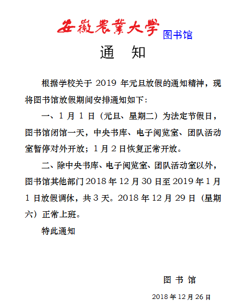 图书馆一周安排表(2018年12月24日——2018年12月29日)