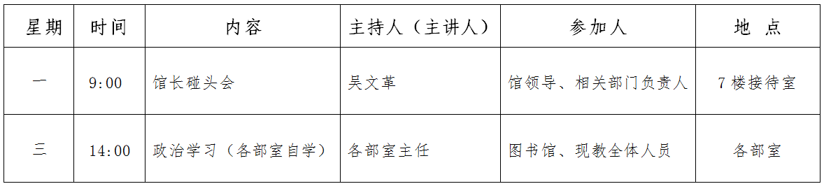图书馆一周安排表(2018年12月17日——2018年12月21日)