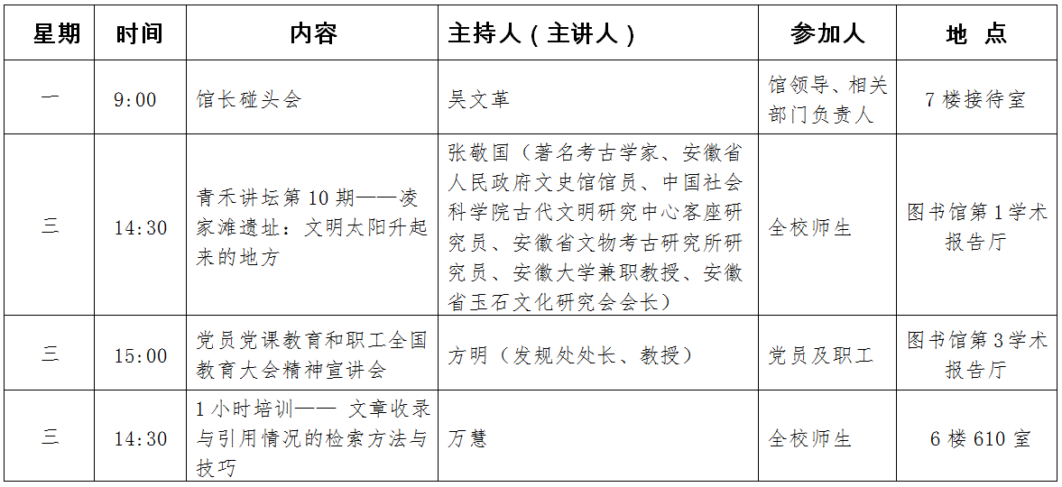 图书馆一周安排表(2018年11月26日——2018年11月30日)