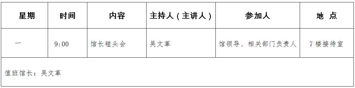 图书馆一周安排表(2019年3月11日——2019年3月15日)