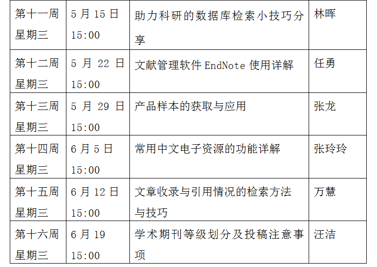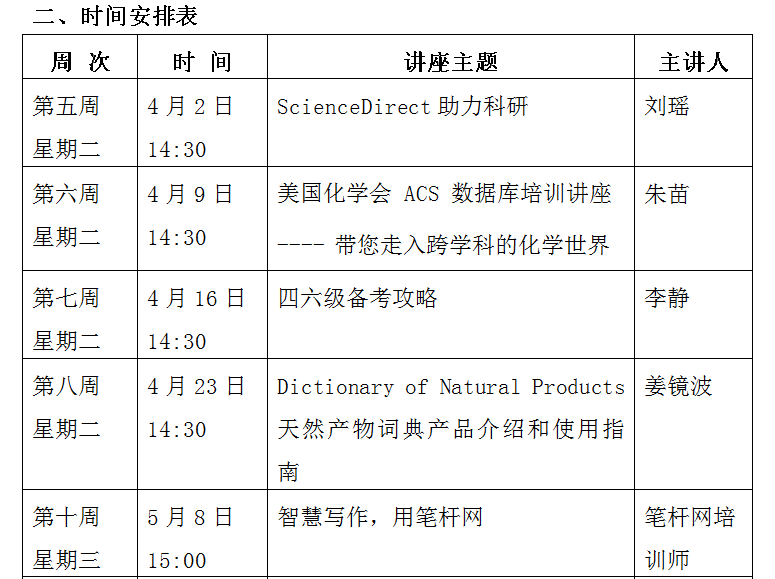 为了帮助全校师生了解和掌握图书馆的各类资源,更好地利用各种数据库服务学校人才培养、科学研究、学科建设等,图书馆将从本学期第五周开始推出定期的读者培训系列讲座。