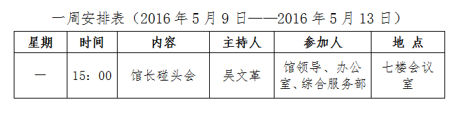 一周安排表(2016年5月9日——2016年5月13日)