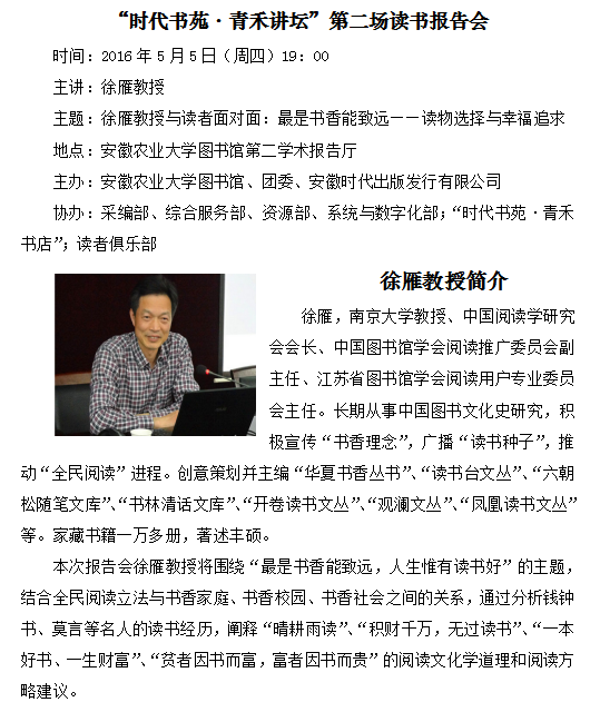 “时代书苑·青禾讲坛”第二场读书报告会