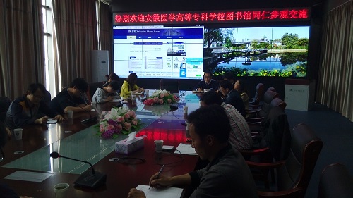 2015年5月5日下午,安徽医学高等专科学校图书馆杨敏副馆长等一行7人来到我馆就读者活动、参考咨询、技术服务、新媒体推广、流通工作等方面进行交流。馆长吴文革、副馆长兼现代教育信息中心主任简少明及相关部门负责人参加了会议。