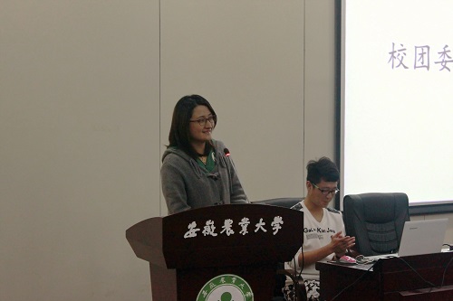 会上冯峰老师结合团委的日常工作做了简短的发言,表扬了新一届中心成员对待此次大会的认真态度,对所有投身于学生服务中心工作的同学表达了赞许。新一届成员代表金梦同学上台发言,朴实而精彩的言语不仅表达了自己的心声,更代表了广大新助理对中心美好未来的祝福。紧接着进行的是对新一届中心各部门负责人颁发任职聘书仪式。大会最后,各学生组织及社团干部表达了对中心的祝福。