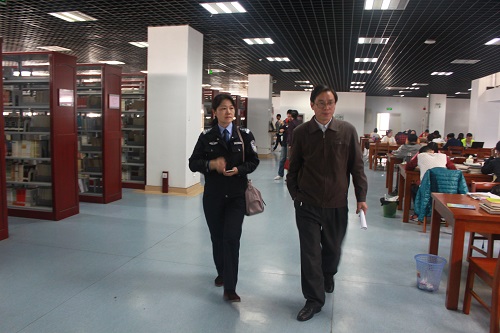 10月27日下午,安徽警官职业学院图书馆吴小冰馆长一行3人来我馆参观考察。吴文革馆长亲切迎接3位图书馆同仁,并详细地介绍了我馆服务大厅的文化氛围建设,以及以服务大厅为中心的“厅”、“苑”、“吧”、“屋”、“坊”多元素结合的学生创业团队服务模式。之后吴文革馆长带领警官职业学院的同仁参观了我馆中央书库、电子阅览室、中心机房和会议中心,并就图书馆的内部管理和读者服务等问题进行了探讨。吴小冰馆长表示此次参观感触颇深,以后要加强馆际交流与合作。