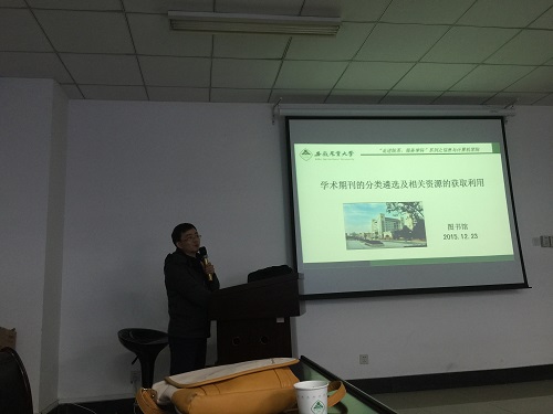 另外,结合教师们比较关心的在职称评聘工作和年终科研考核过程中相关学术期刊等级划分的问题,向信息与计算机学院广大老师做了详细的介绍;同时还介绍了图书馆及信息咨询部的日常工作和服务范围。