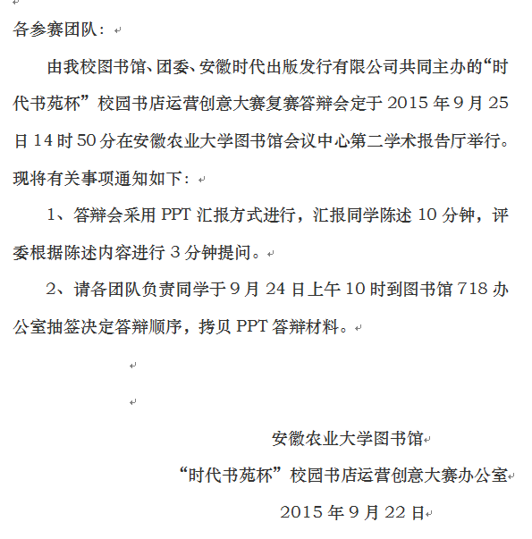 关于安徽农业大学“时代书苑杯”校园书店运营创意大赛复评答辩会的通知