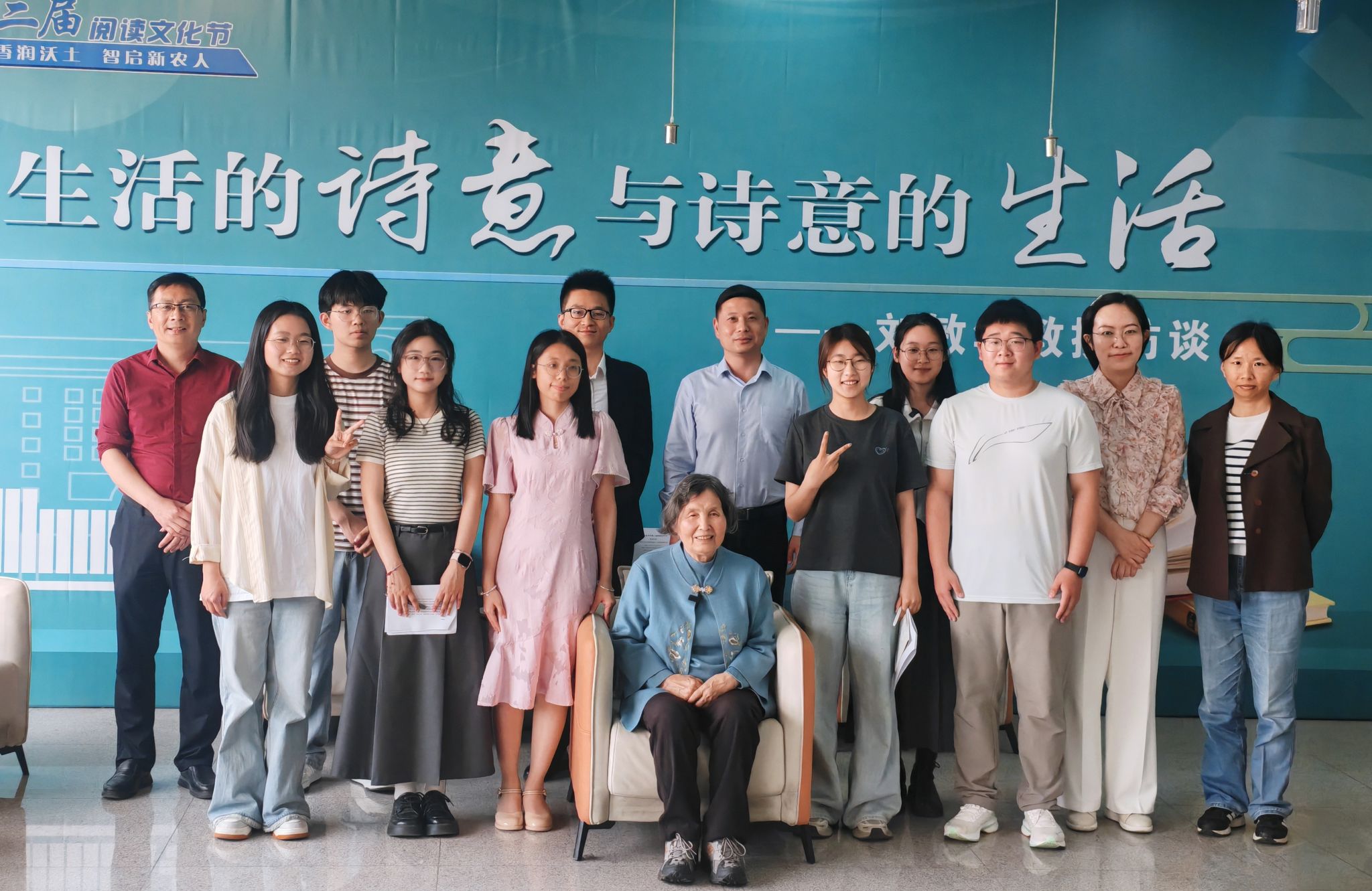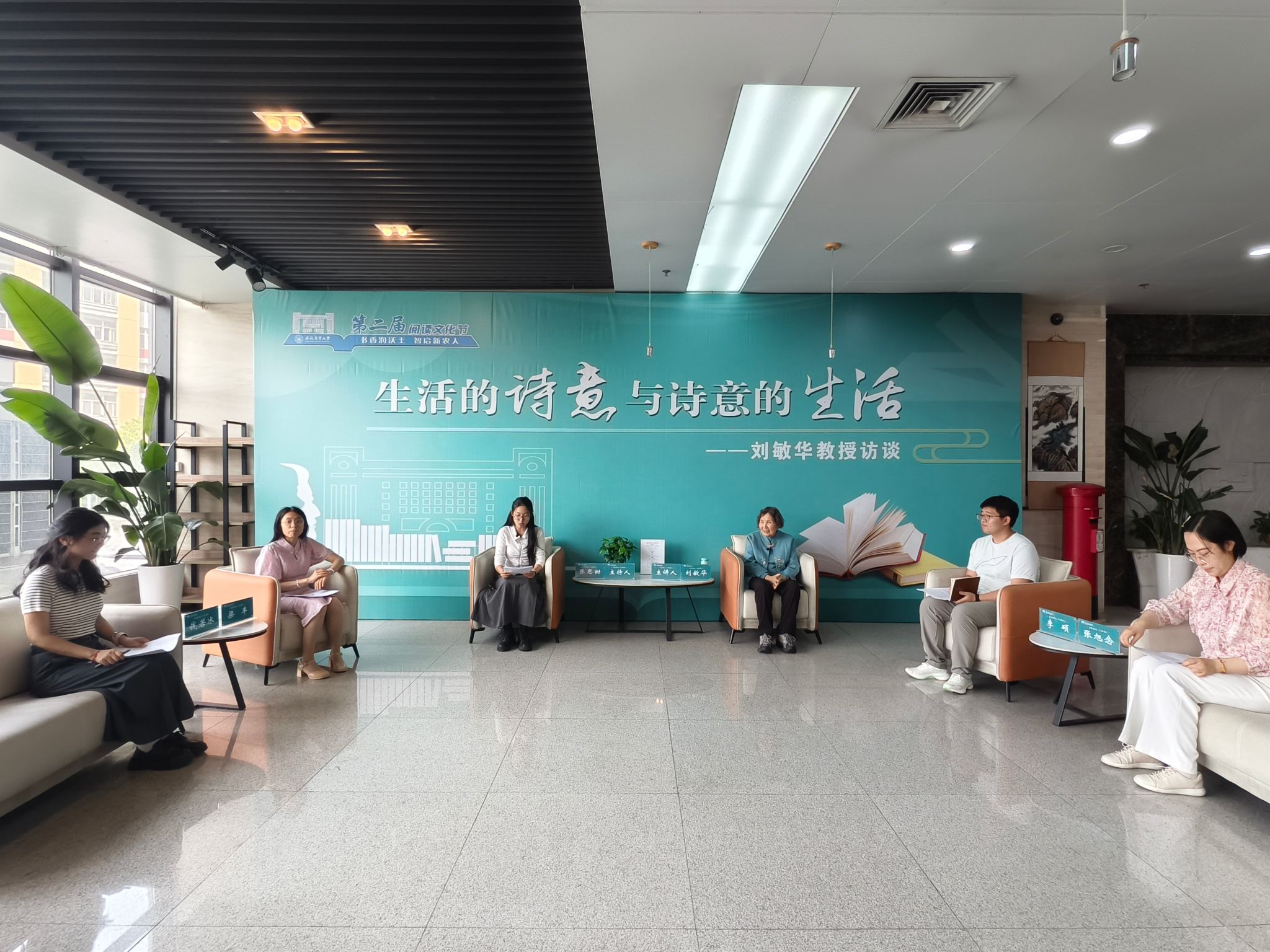 本网讯 4月23日下午,学校第二届阅读文化节“青禾对话”活动在图书馆一楼青禾书店举办,我校退休教师刘敏华教授应邀参加,就“生活的诗意与诗意的生活”话题,与青年师生面对面交流。校团委,图书馆、档案馆负责同志及部分青年师生参加本次活动。
