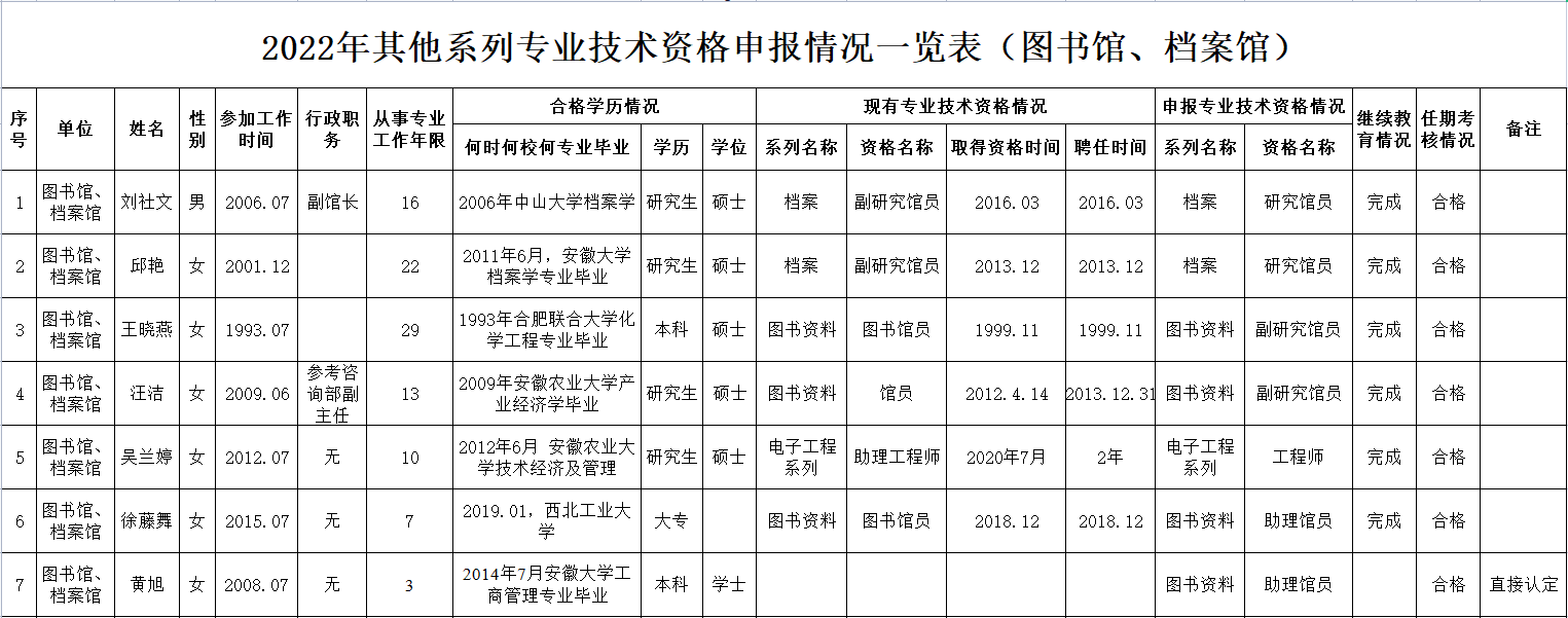 2022年其他系列专业技术资格申报情况一览表(图书馆、档案馆)