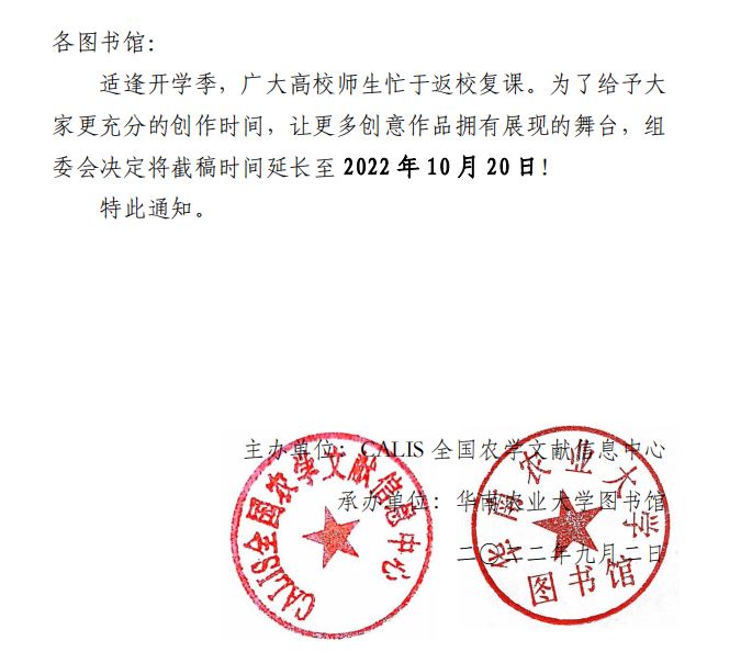 关于全国涉农高校师生乡村振兴主题阅读创作大赛活动投稿延期的通知
