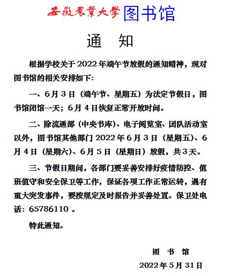 图书馆、档案馆一周安排表(2022年5月30日——2022年6月3日)